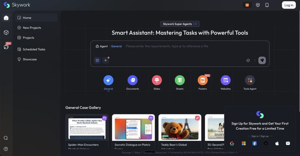 簡単にスライド制作ができる多機能な生成AIを探している方にオススメしたいのが『Skywork.ai』です。
